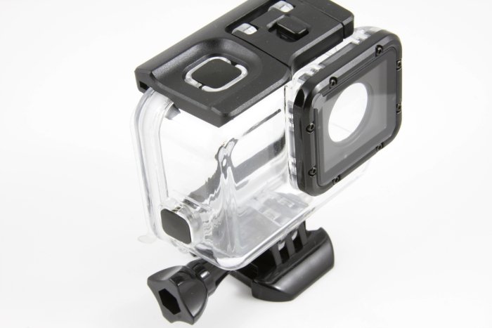 Aby zamocować obudowę podwodną konieczne jest zdjęcie osłony ochronnej nałożonej na obiektyw kamery GoPro Hero 6 BLACK / Hero 5 BLACK.