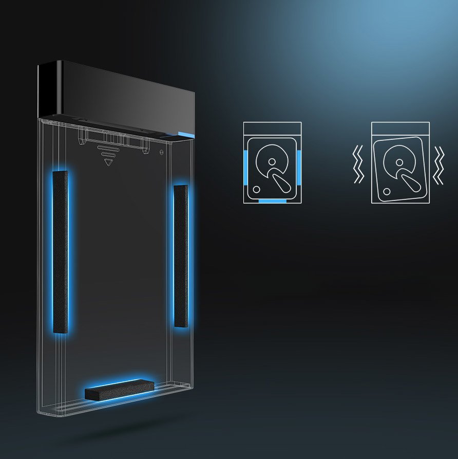 Wysoka jakość materiałów i elegancji wygląd pozwalają zabrać go ze sobą wszędzie tam, gdzie tylko może być przydatny. Zastosowanie trwałych materiałów i wysokiej jakości wykonanie zapewnia wysoką wytrzymałość i długą żywotność. Do zamontowania dysku nie są wymagane narzędzia. Środek został wyłożony gąbką pochłaniająca wstrząsy i z zabezpieczającą dysk przed uszkodzeniem.