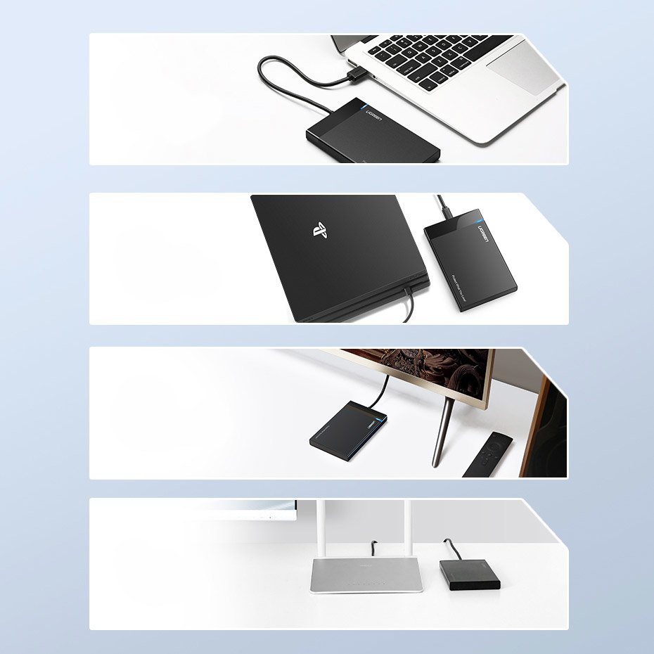 Obudowa zewnętrzna dla dysków SATA 2,5" marki UGREEN została zaprojektowana z myślą o bezpieczeństwie dysku i szybkości transferu danych. Urządzenie jest kompatybilne z systemami operacyjnymi Windows, Mac OS oraz Linux. Dodatkową zaletą jest możliwość podłączenia dysku bezpośrednio do telewizora (jeżeli posiada obsługę pamięci zewnętrznych) lub wykorzystania go jako dysku zewnętrznego konsoli PS 4 lub Xbox (360/One).
