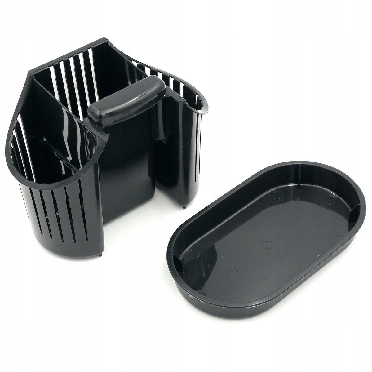 3 komorowy ociekacz na sztućce z podstawką. Ociekacz został wykonany z tworzywa sztucznego.