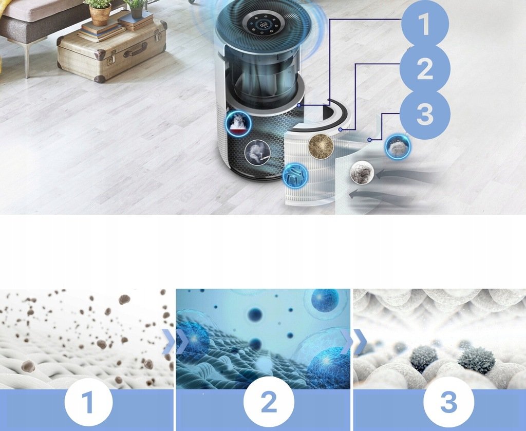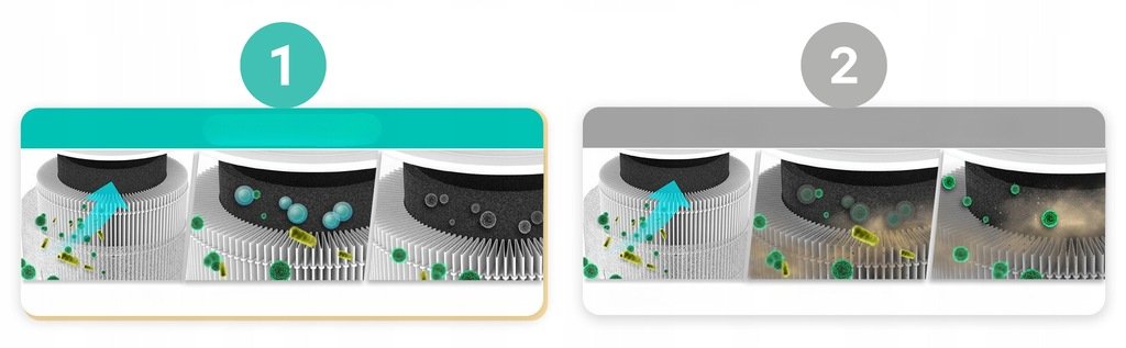 Dzięki filtracji True HEPA oraz wzmocnionej technologii HEPASmart, oczyszczacz jest w stanie zatrzymać do 99,97% cząstek o wielkości 0,3 mikrometra oraz 99,9% cząstek o wielkości 0,1 mikrona a także 99,99% bakterii i wirusów.