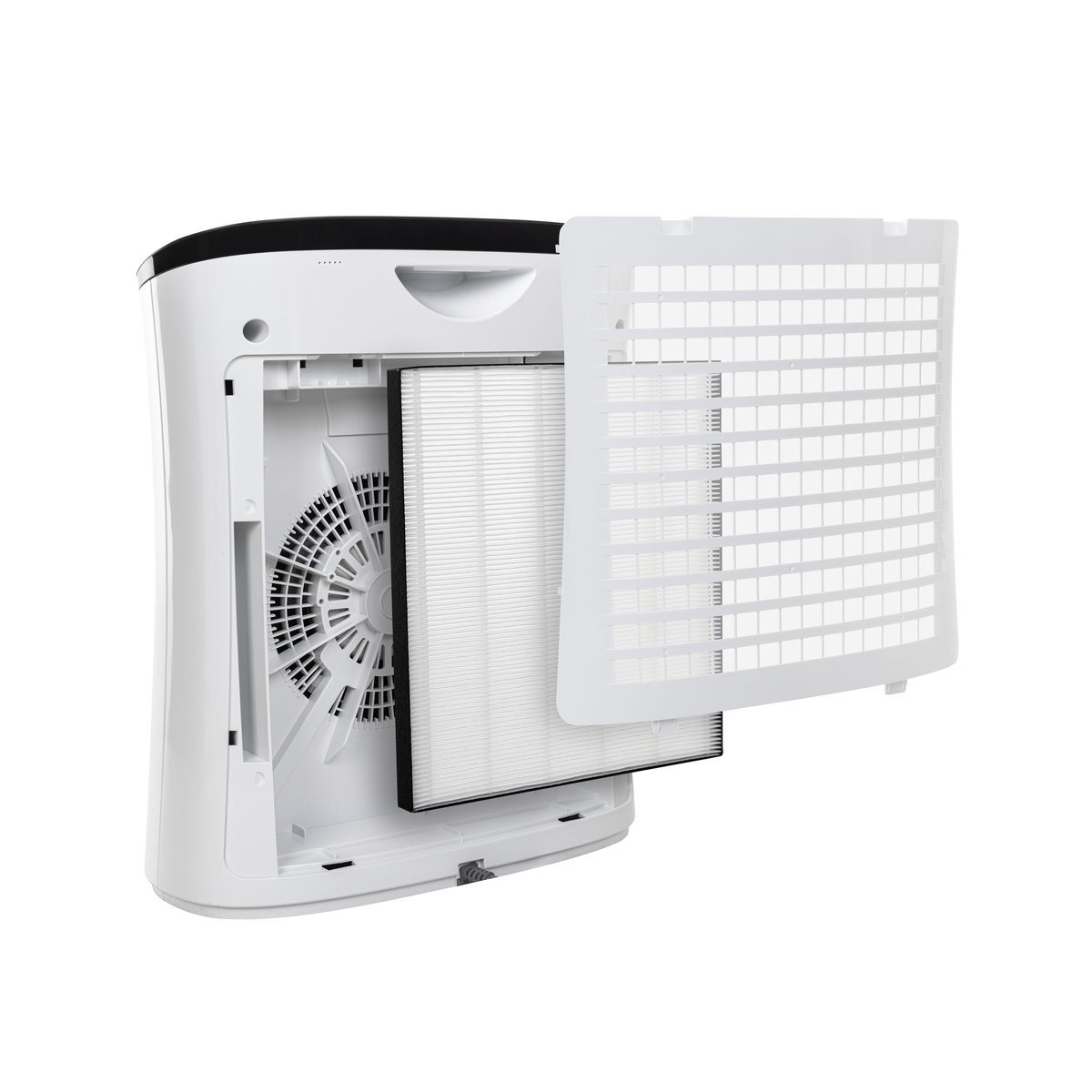 Sterowanie sensorowe odbywa się za pomocą wyprofilowanych przycisków. Do zmiany ustawień oczyszczacza wystarczy lekkie dotknięcie. Urządzenie z takim systemem sterowania jest wygodne oraz intuicyjne w użyciu.