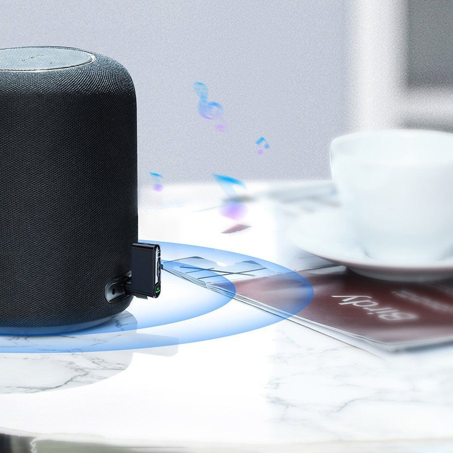 Niewielki, kompaktowych rozmiarów odbiornik bluetooth Qiyin marki Baseus.