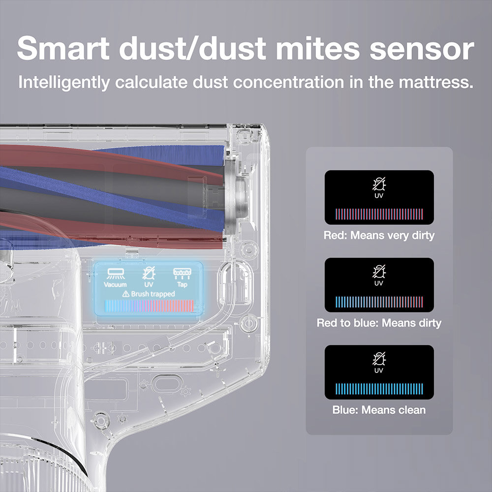 Opatentowana szczotka walcowa z miękkim gumowym paskiem i miękkim paskiem z włosia, z niezależnym silnikiem szczotki walcowej, JIMMY BX7Pro może z łatwością zbierać drobny kurz i roztocza głęboko w materacu bez uszkadzania jego powierzchni.