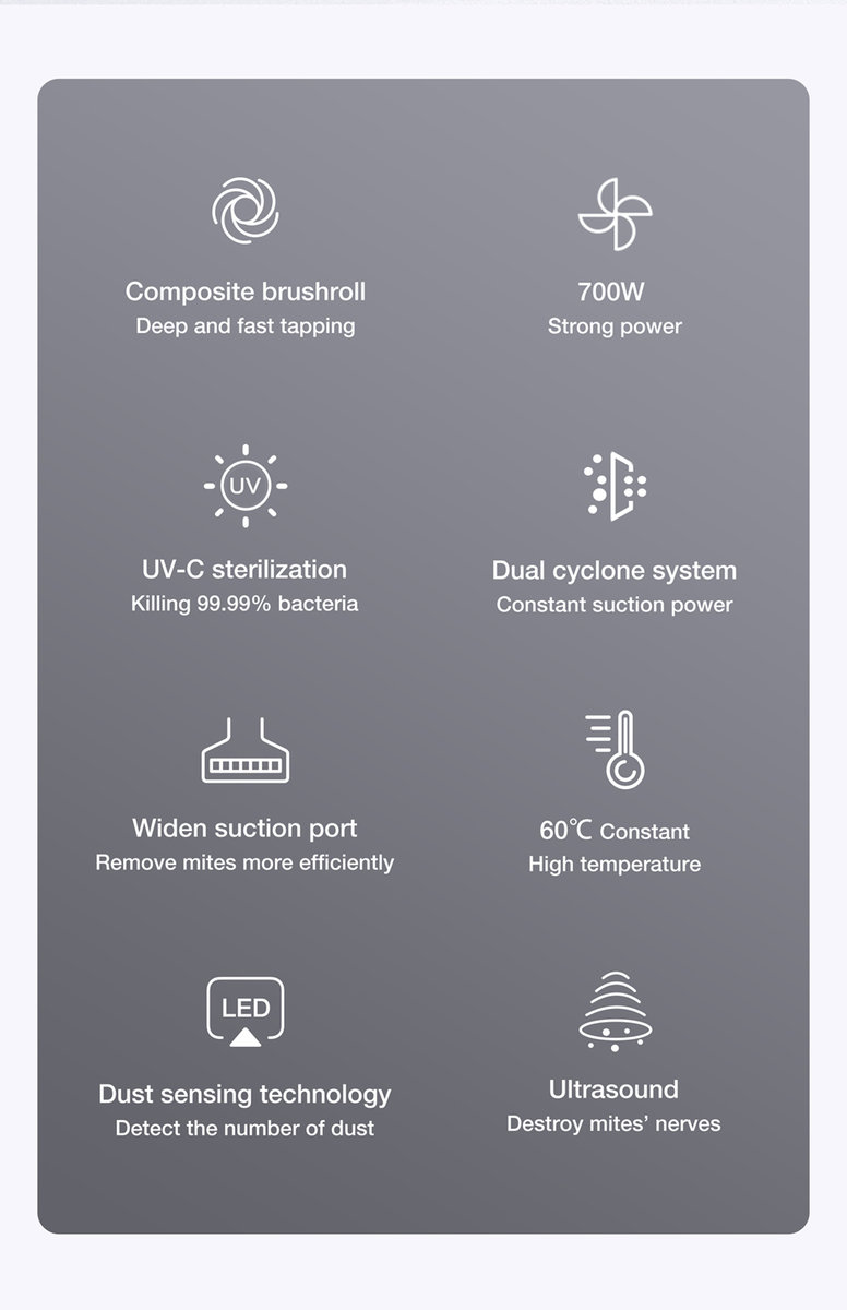 Podgrzewa do 60°C w 5 sekund, może szybko przeniknąć do łóżka i materaca, szybko zabijając roztocza i bakterie.
