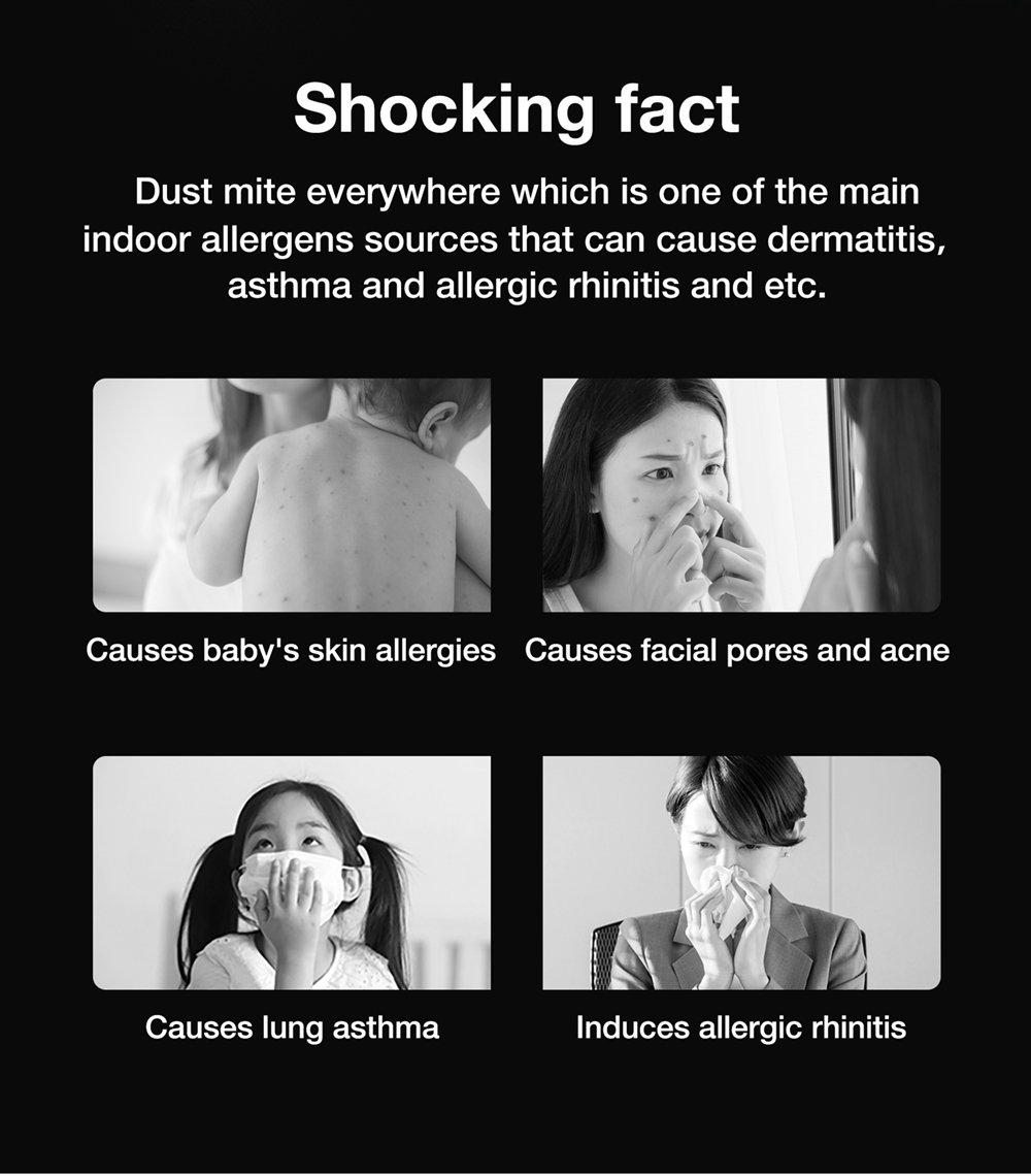 Ultradźwięki mogą niszczyć nerwy roztoczy, zapobiegać ich rozwojowi i skutecznie eliminować roztocza na długi czas. Bezpieczny dla niemowląt.