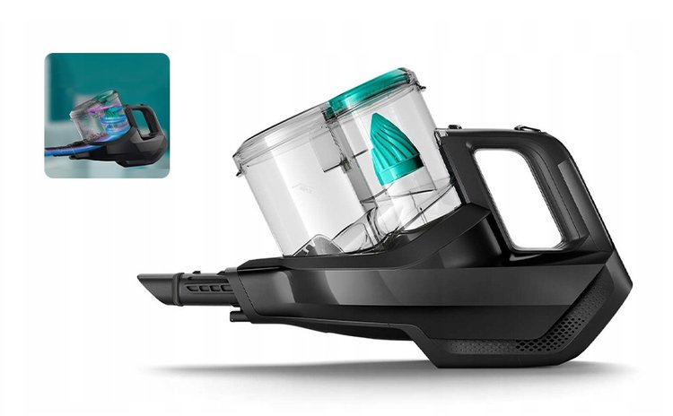 | Funkcje urządzenia: | podświetlenie LED, regulacja mocy ssania, tryb Turbo, zabezpieczenie przed przeładowaniem, odłączany odkurzacz ręczny |