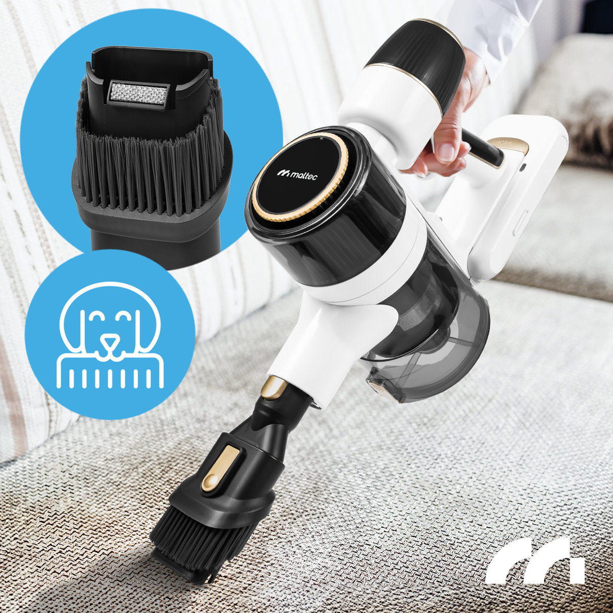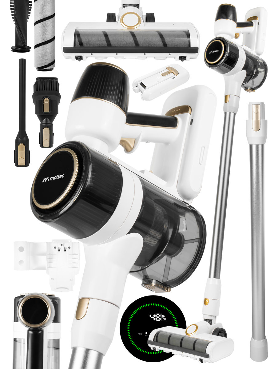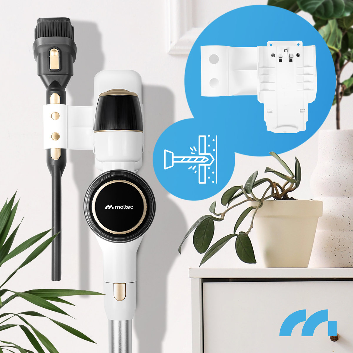 Kupując odkurzacz MalTec TURBOCYCLONE PRO1000, otrzymujesz w zestawie praktyczną stację ścienną, która ułatwia ładowanie i organizację akcesoriów.