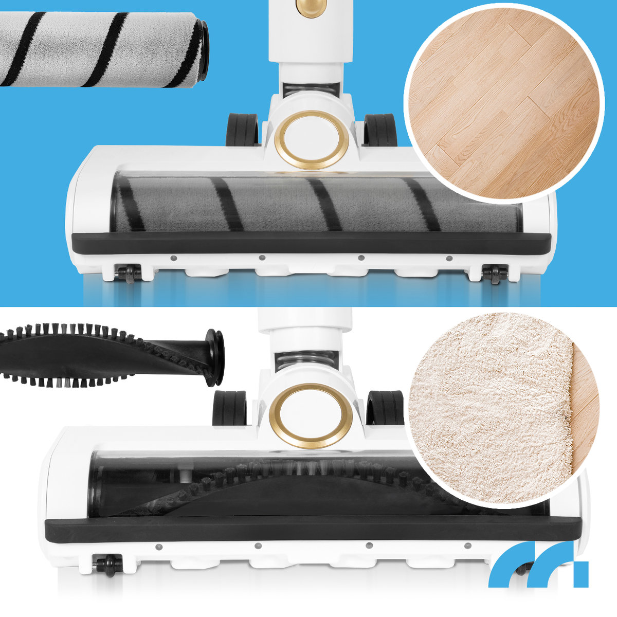 Końcówka główna wyposażona jest w napędzaną elektrycznie obrotową szczotkę, która skutecznie zbiera kurz, sierść i inne zabrudzenia z podłóg twardych oraz dywanów. Dzięki napędowi elektrycznemu i dopasowaniu do różnych nawierzchni, zapewnia lepsze rezultaty czyszczenia niż standardowe ssawki.