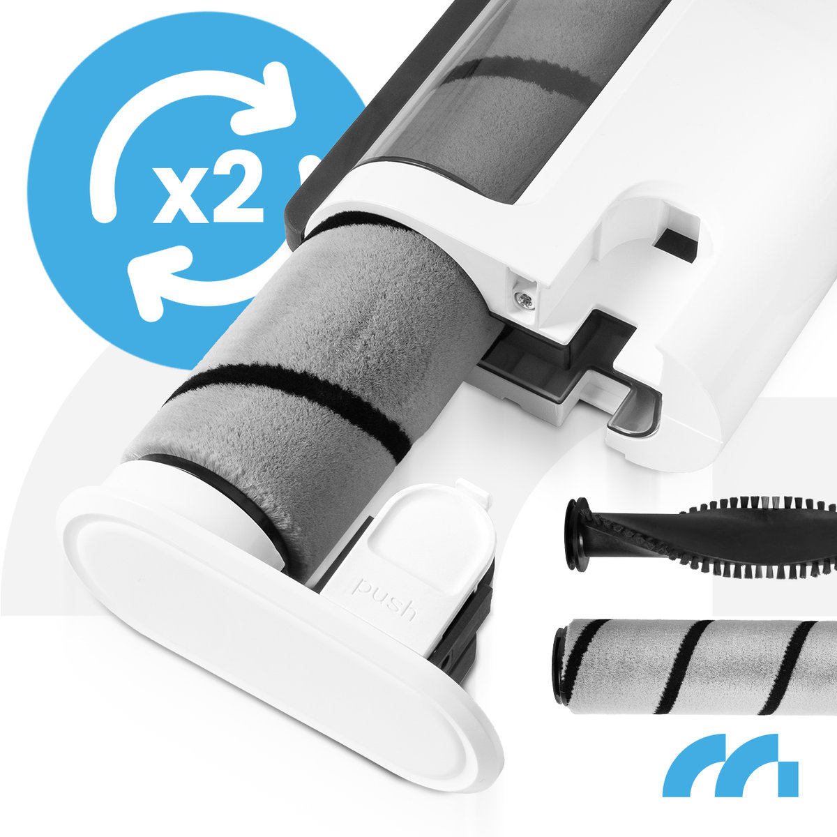 W zestawie znajdują się dwa wymienne wałki do elektroszczotki: