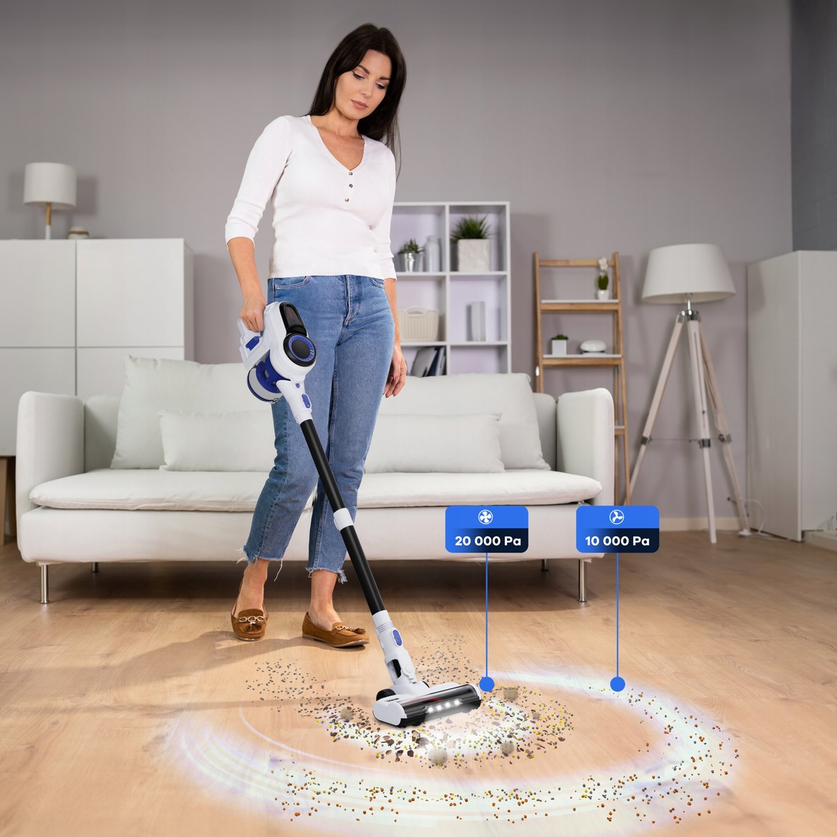 TRYB MAX: Tryb maksymalnej mocy (20 000 Pa) sprawdzi się przy bardziej zaawansowanych zanieczyszczeniach oraz powierzchniach tj. dywany. Ogromna moc sprawia, że odkurzacz poradzi sobie nawet w najtrudniejszych sytuacjach.