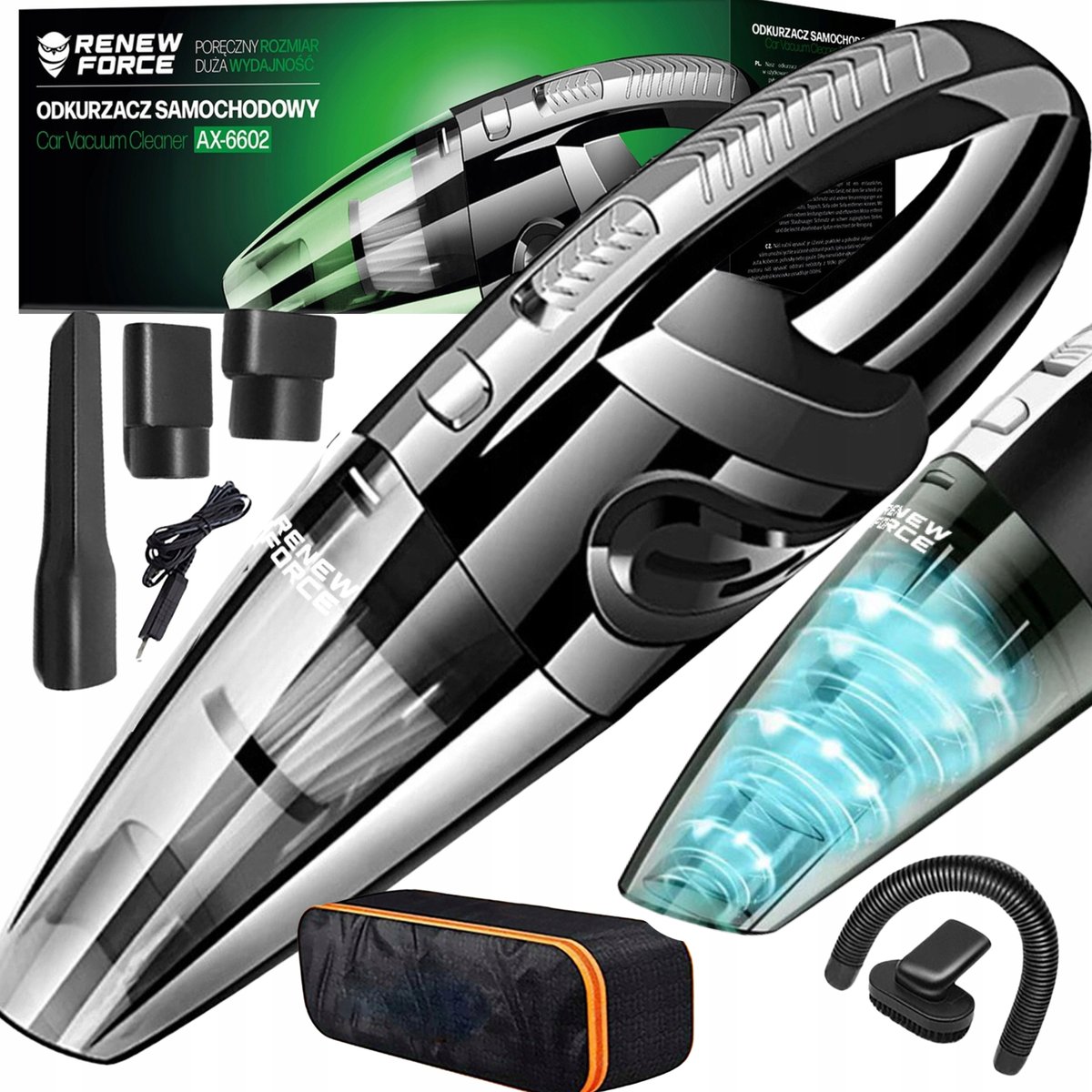 ODKURZACZ BEZPRZEWODOWY SAMOCHODOWY RĘCZNY MOCNY ZESTAW XL KOŃCÓWKI TORBASUPER MOCNY BEZPRZEWODOWY ODKURZACZ RĘCZNY✨ ➕ PRZEWÓD ZASILAJĄCY ➕ ZESTAW 4 KOŃCÓWEK CZYSZCZĄCYCH ➕ RURKA PRZEDŁUŻKA ➕ TORBA ...