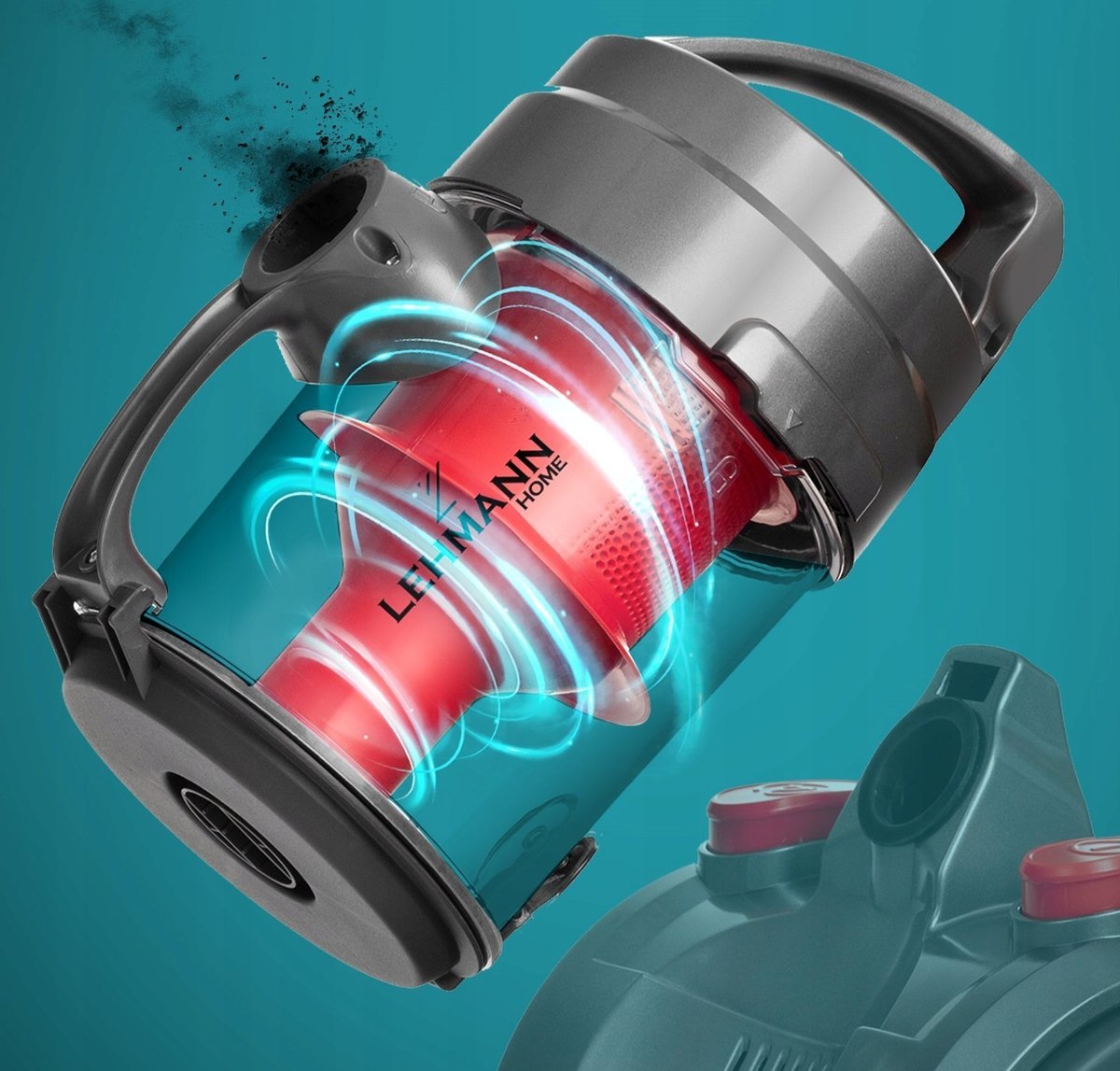 Zbiornik odkurzacza Lehmann jest tak skonstruowany by umożliwić Ci jego szybkie i proste czyszczenie. Wystarczy wysypać zawartość, a pojemnik możesz nawet wypłukać. Standardowe odkurzacze posiadają worki, które trzeba wymieniać co łączy się z dodatkowymi kosztami. Odkurzacz działa na zasadzie cyklonu zasysa powietrze, które w sposób wirowy zagarnia wszelkie zanieczyszczenia i zostawia w środku.