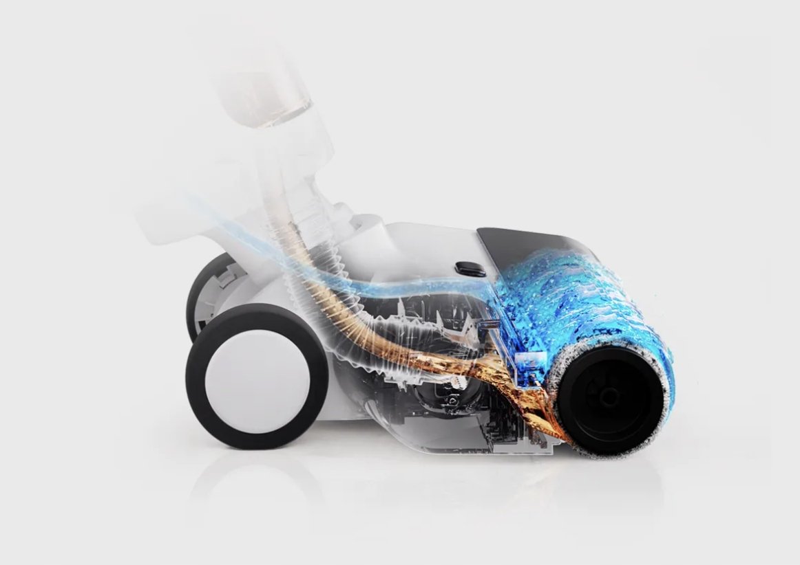 Dzięki jednoczesnemu zintegrowaniu odkurzania, mopowania i samoczyszczenia, wałek szczotkowy upraszcza proces czyszczenia. Mokry lub suchy brud jest bez wysiłku usuwany za jednym razem