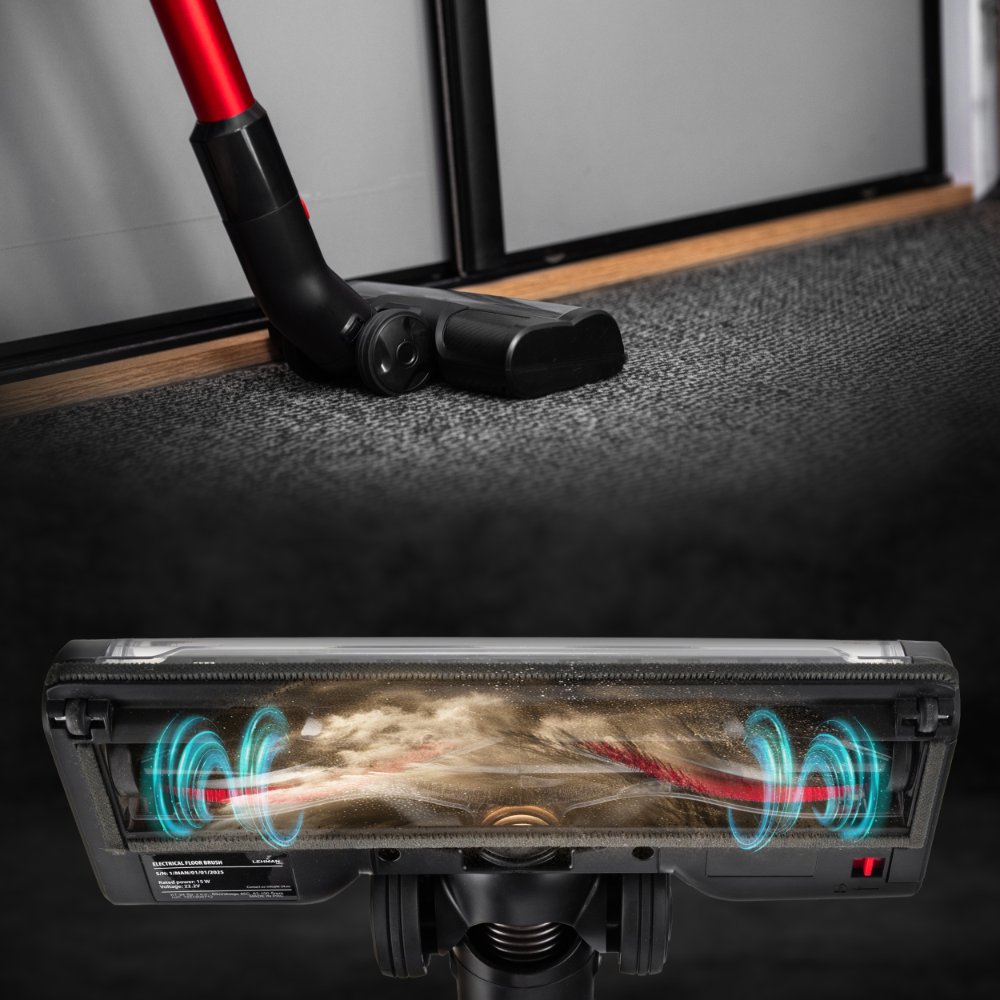 Oświetlenie LED przed szczotką ułatwia sprzątanie pod meblami i wzdłuż ścian. Zobaczysz każdy kurz, nawet w ciemnych zakamarkach.