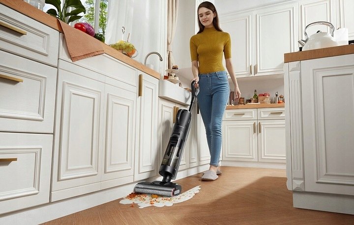Dreame H12 Dual powstał z myślą o kompleksowym czyszczeniu, dlatego pozwala zarówno odkurzać, jak i myć powierzchnie. Wykorzystuje mocny silnik bezszczotkowy, więc z łatwością pomoże Ci posprzątać kurz, włosy czy rozlane płyny. Świetnie poradzi sobie również z zanieczyszczeniami w kuchni.