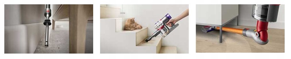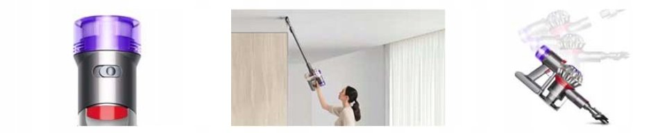 Technologia bezprzewodowa Dyson ułatwia sprzątanie w całym domu. Sprzątaj szybko i wydajnie podłogi twarde, dywany, trudno dostępne miejsca i materace. Z łatwością posprząta podłogi, sofy i schody, a także położone wyżej sfery tj, sufit. Odkurzacz szybko zmienia się w odkurzacz ręczny umożliwiając sprzątanie każdej przestrzeni w domu