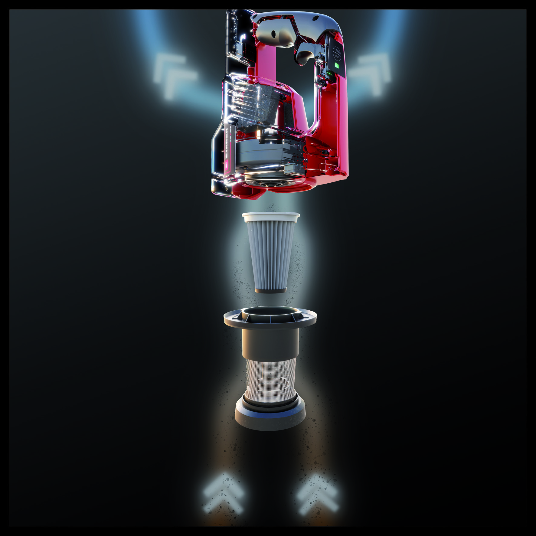 – Funkcja 2 w 1 – mały odkurzacz samochodowy lub pionowy odkurzacz domowy– Doskonałe odkurzanie wszystkich rodzajów podłóg dzięki obrotowym szczotkom ssawki