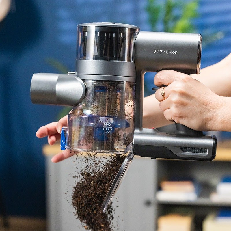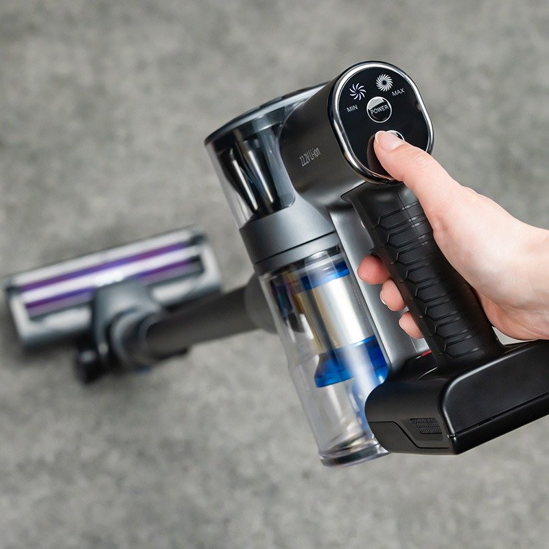 Wbudowany akumulator litowo-jonowy o napięciu 22.2V gwarantuje efektywne odkurzanie całego mieszkania.