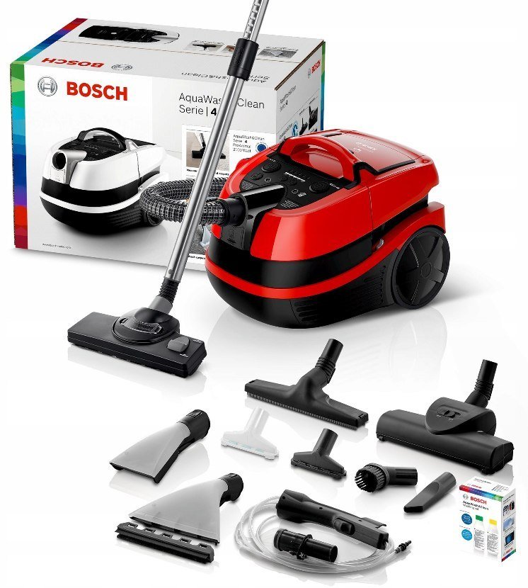 Odkurzacz piorący to bardzo funkcjonalne urządzenie, pozwalające na usuwanie nawet głębokiego brudu z wielu powierzchni. Sposób jego działania polega na spryskaniu sprzątanego obszaru wodą oraz środkiem chemicznym, a następnie zasysaniu brudnej wody wraz z nieczystościami do dedykowanego pojemnika. BOSCH AquaWash BWD421PET o mocy 2100 W pomoże w efektywnym praniu dywanów, wykładzin, czy tapicerowanych mebli.