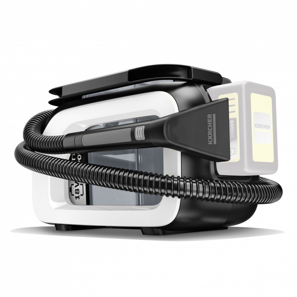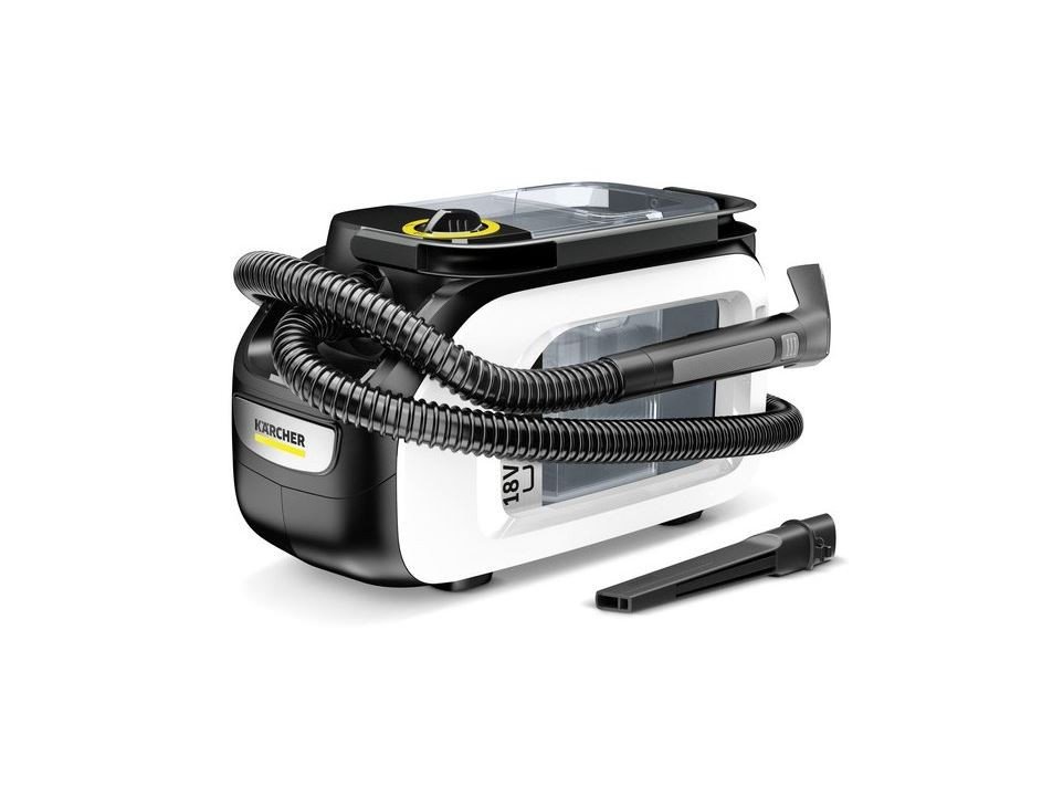 Dokładne czyszczenie włókien z maksymalną swobodą ruchów: Urządzenie SE 3-18 Compact do ekstrakcji natryskowej dokładnie i bez pozostałości czyści tekstylne powierzchnie. Kompaktowa budowa urządzenia sprawia, że jest ono nie tylko poręczne, ale może być także dzięki 18 V akumulatorowi Kärcher Battery Power (nie jest dostarczany z urządzeniem) wykorzystywane niezależnie od źródła zasilania. Pozwala to na wyczyszczenie wnętrza pojazdu w zaledwie od 12 do 24 minut. W mgnieniu oka usuniesz zanieczyszczenia z siedzeń samochodowych, dywaników i bagażnika, a także mebli ogrodowych i tapicerki tak samo skutecznie, jak przy pomocą naszych przewodowych urządzeń do ekstrakcji natryskowej. Długi oraz elastyczny wąż ssący z wewnętrznym wężem do środka czyszczącego, zapewniają wygodę i elastyczność podczas czyszczenia, nawet w trudno dostępnych miejscach. Nawet po zakończeniu czyszczenia urządzenie do ekstrakcji natryskowej zachwyci Cię higieniczną funkcją opłukiwania, która usuwa zanieczyszczenia z urządzenia oraz węża, a tym samym zapobiega namnażaniu się bakterii i powstawaniu nieprzyjemnych zapachów. Zgodne z mottem czysty pojazd, czyste urządzenie czyszczące".