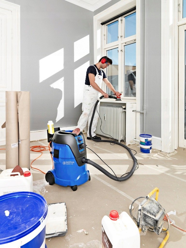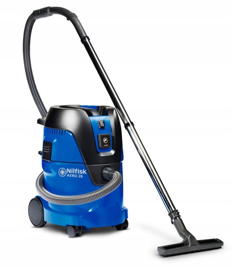 Odkurzacz Nilfisk AERO 26-21 PC to półprofesjonalny model o pojemności 25L i 1250W, idealny do usuwania wody i kurzu. Posiada półautomatyczny system czyszczenia filtra „Push&Clean”, gniazdo narzędzia