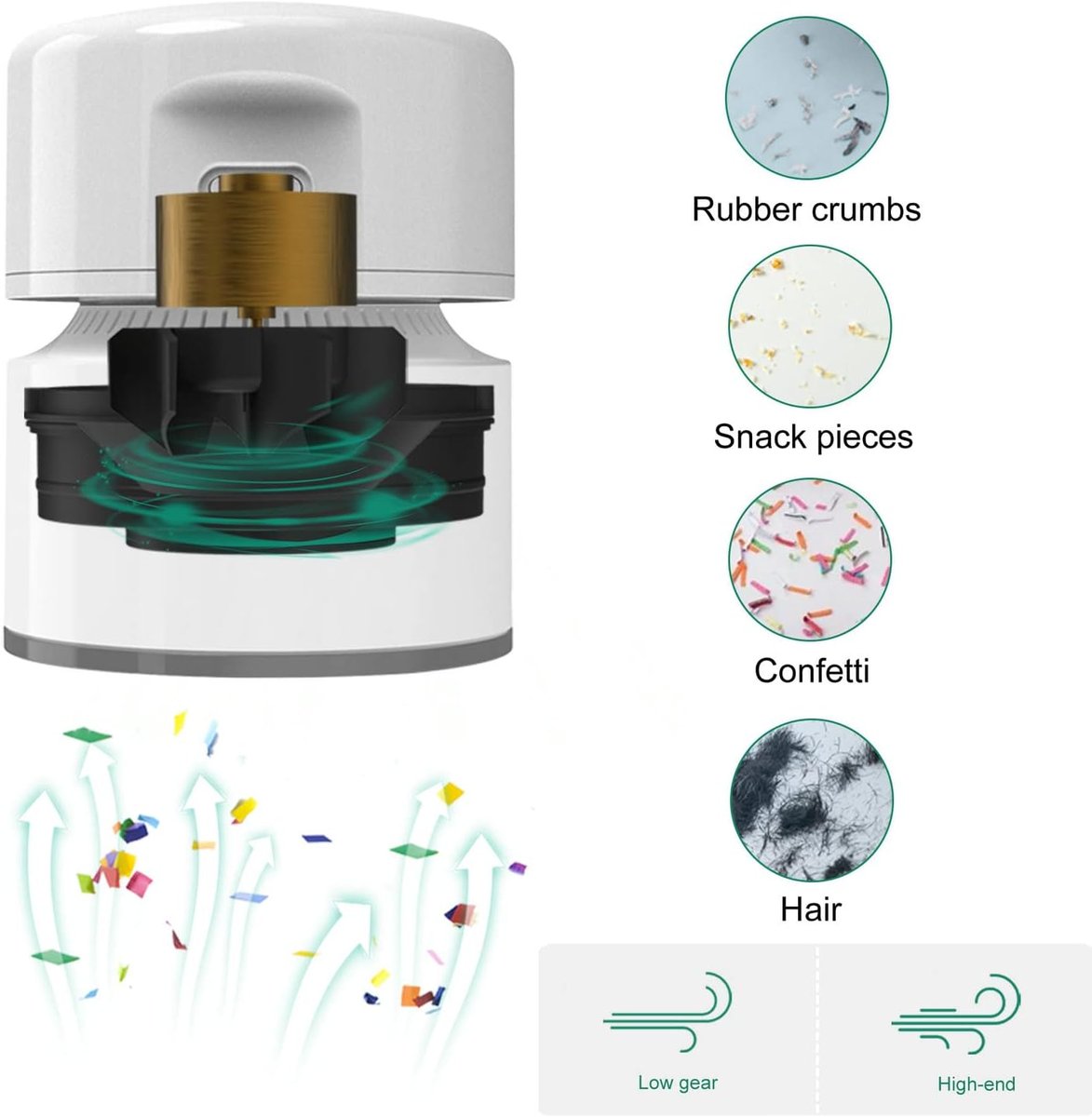 【Wysoka moc ssania】Odkurzacz stołowy obraca się z prędkością do 9000 obr./min, podczas gdy inne odkurzacze obracają się z prędkością 6000 obr./min. Odkurzacz ręczny ma siłę ssania 800 Pa, wystarczającą do zebrania największych zanieczyszczeń, z dwoma ustawieniami ssania: wysokim i niskim.