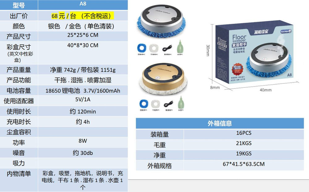 ROBOT MOPUJĄCY AUTOMATYCZNY BEZPRZEWODOWY ELEKTRYCZNY SPRZĄTAJĄCY SREBRNY