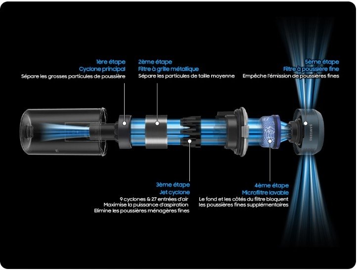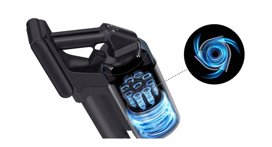 Ciesz się czystszym powietrzem dzięki wielowarstwowemu systemowi filtracji, który zatrzymuje 99,999%* kurzu**. Ciesz się wyjątkową mocą ssania dzięki wielocyklonowej konstrukcji Jet Cyclone: 9 cyklonów z 27 wlotami optymalizuje przepływ powietrza.