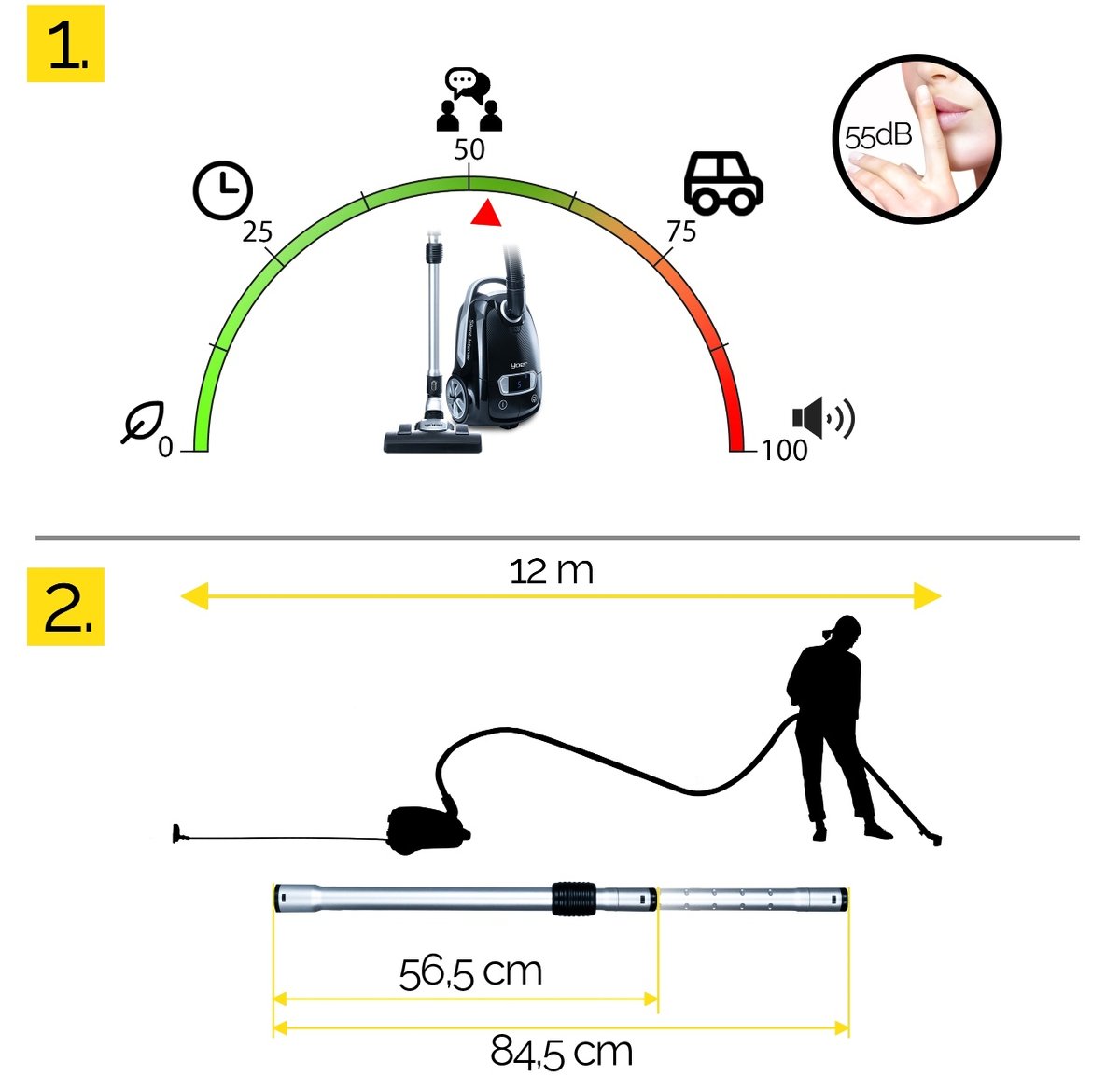 ✅ 55 dB - tak niska głośność stawia nasz odkurzacz w gronie najcichszych odkurzaczy na rynku (pomiar na najniższym poziomie mocy)
