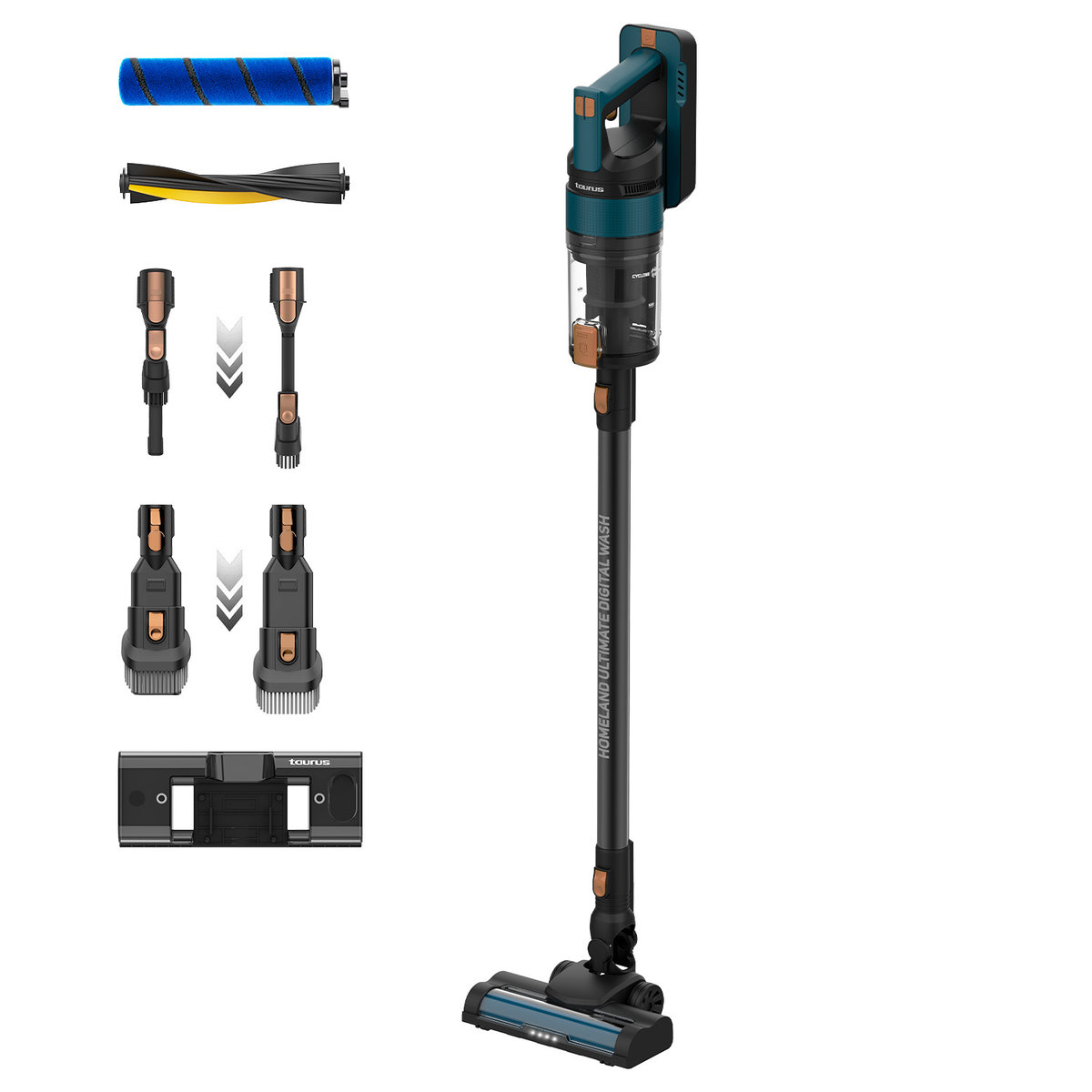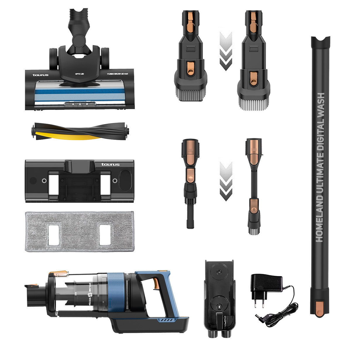 Zasilany akumulatorem Taurus Homeland Ultimate Digital Wash to jednocześnie bezprzewodowy odkurzacz o olbrzymiej mocy ssania 21K Pa i 90K obrotach na minutę oraz elektryczny mop.
