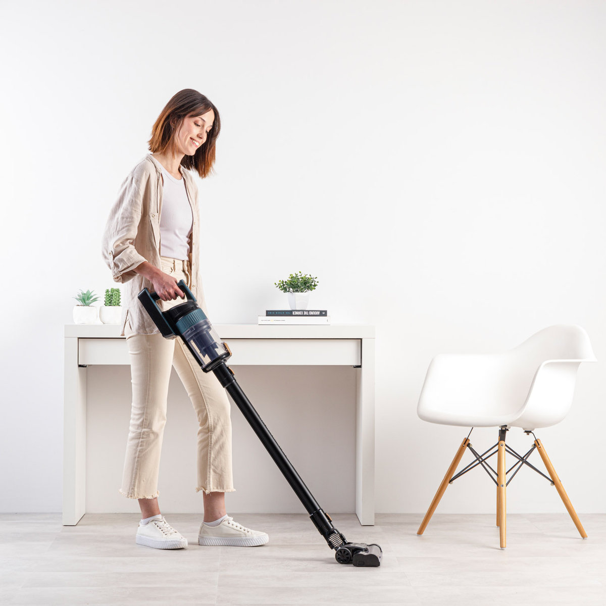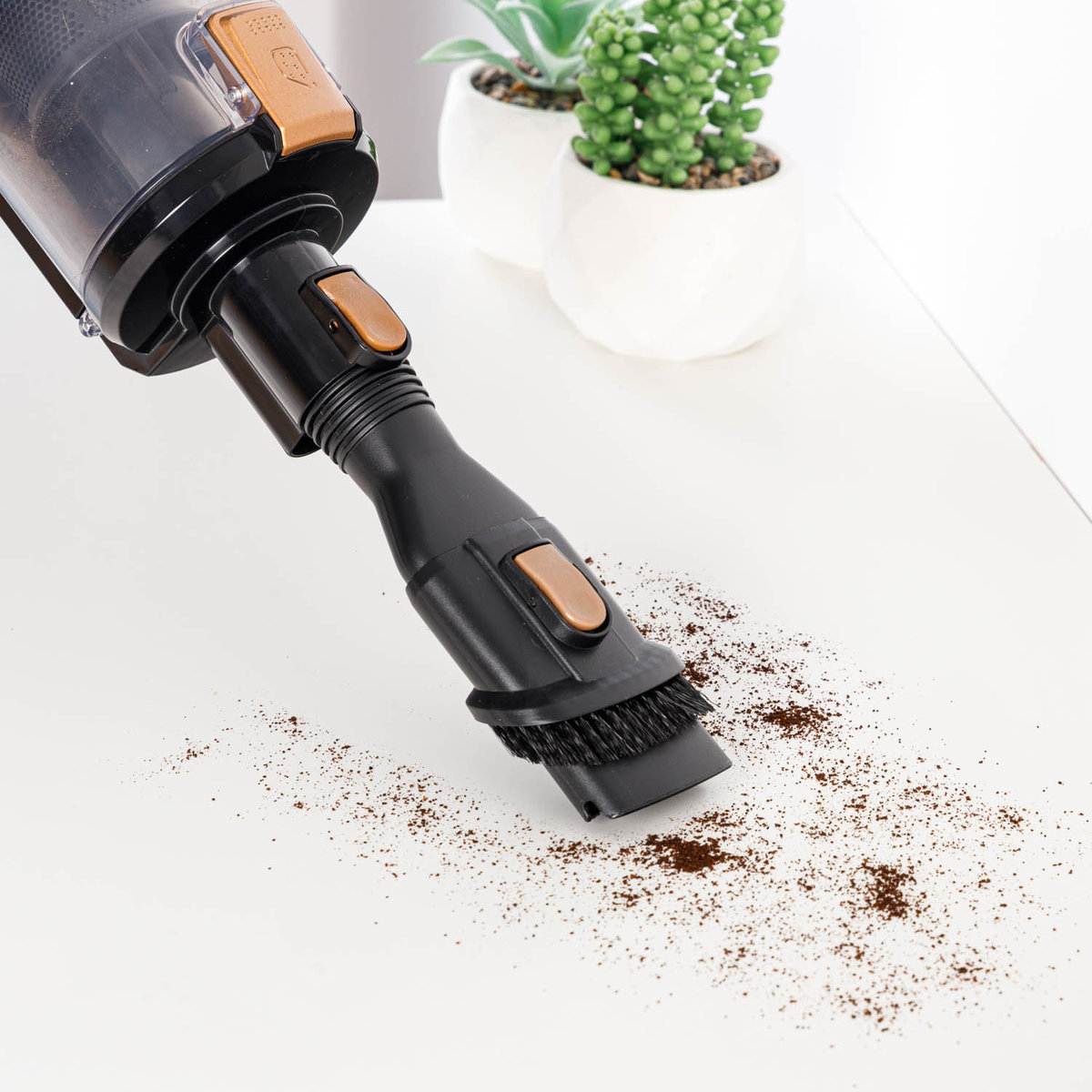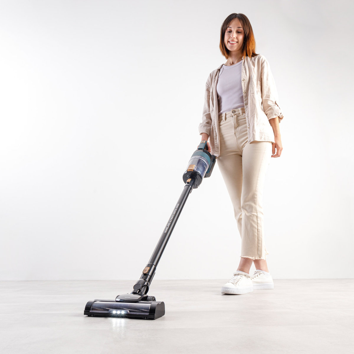 Wszystkie akcesoria można łatwo przyłączać i odłączać jednym kliknięciem. Odkurzacz jest też wyposażony w podświetlenie LED w stopie. Dzięki niemu możesz dokładniej sprzątać w ciemnych zakątkach.