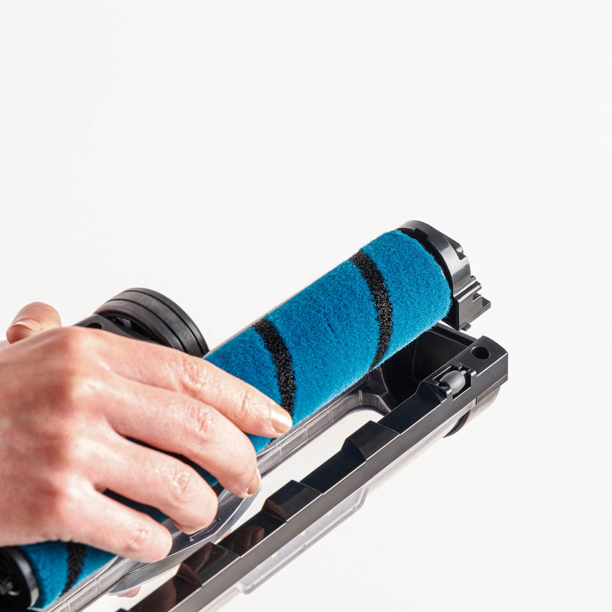 Skorzystaj z wymiennych szczotek, wpinanych do zmotoryzowanej stopy, które dopasowane są do różnych powierzchni. Fuzzy przeznaczona jest do powierzchni delikatnych, natomiast All Road do wszystkich rodzajów.
