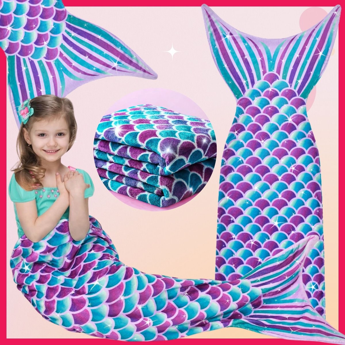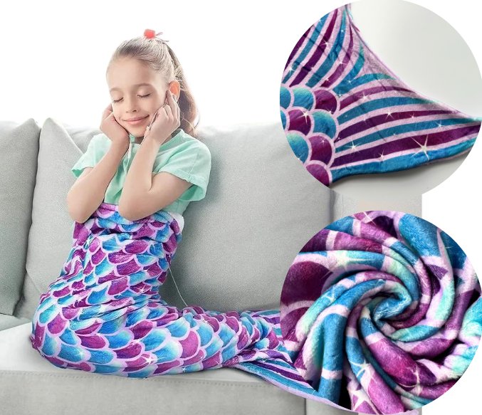 Koc ogon syreny spełni marzenia każdej dziewczynki o byciu podwodną księżniczką, otulając ją ciepłem i magią morskich głębin.