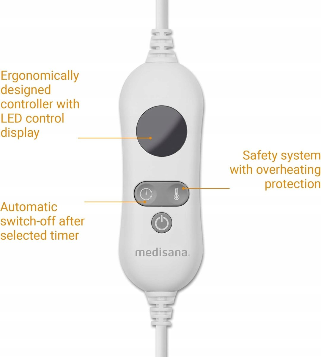 Podgrzewacz do stóp jest wyposażony w praktyczny element sterujący LED i automatyczne wyłączanie po 90 minutach