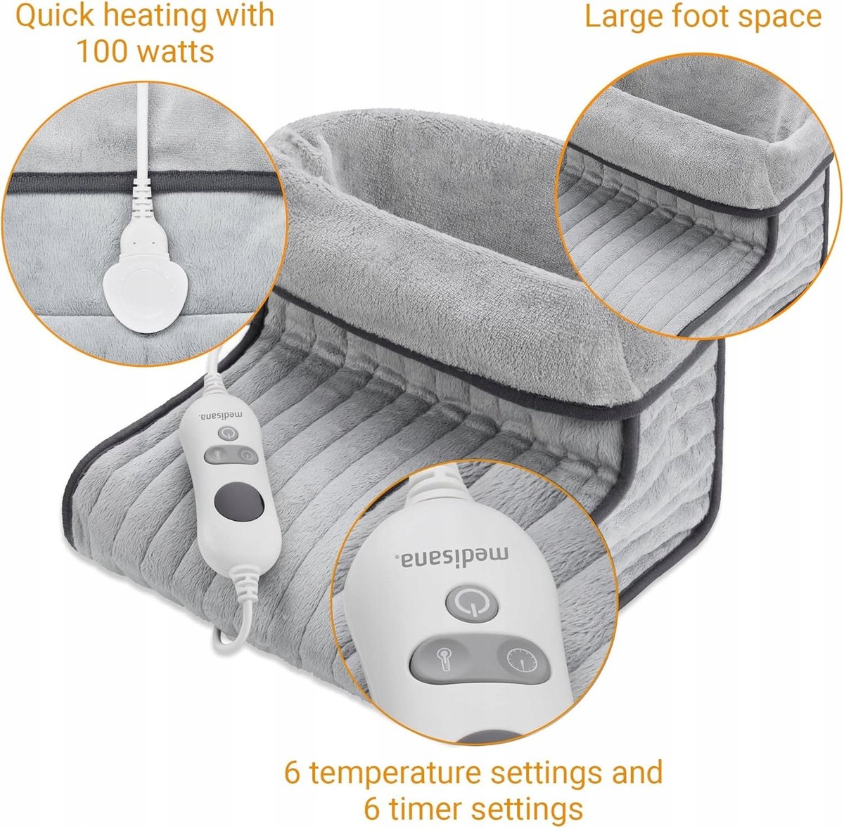 - 6 poziomów temperatury: podgrzewacz do stóp działa w 6 dowolnie regulowanych poziomach temperatury i ma wyjątkowo miękki, oddychający rdzeń, aby zaspokoić wszystkie potrzeby