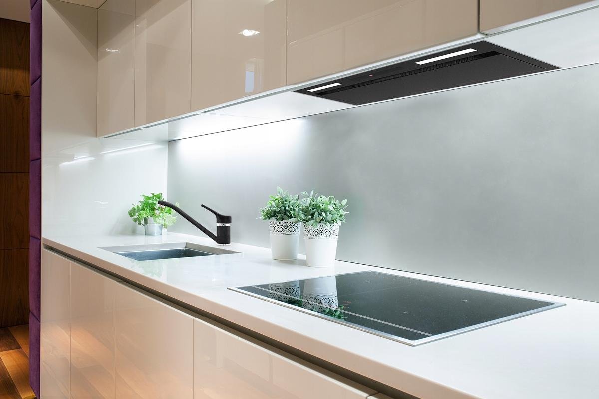 Aluminiowe elementy filtracyjne okapów, estetycznie ukryte pod dekoracyjną pokrywą. Na powierzchni okapu tworzy się dzięki nim szczelina, poprzez którą opary zasysane są w miejsca gwarantujące ich skuteczne usuwanie.