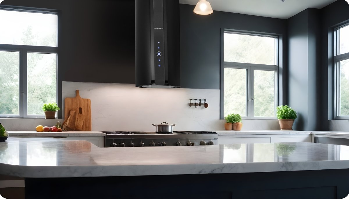 Prezentowany okap wyspowy to idealne rozwiązanie dla osób szukających wydajnego urządzenia, które również nada kuchni stylu i szyku.