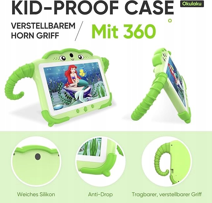 Tablet dziecięcy Okulaku to doskonałe narzędzie wspierające rozwój dzieci w wieku od 3 do 14 lat. Wyposażony w przyjazne dla dzieci funkcje, solidne zabezpieczenia i aplikacje edukacyjne, ten 7-calowy tablet Android zapewnia rozrywkę, naukę i bezpieczeństwo w jednym urządzeniu.