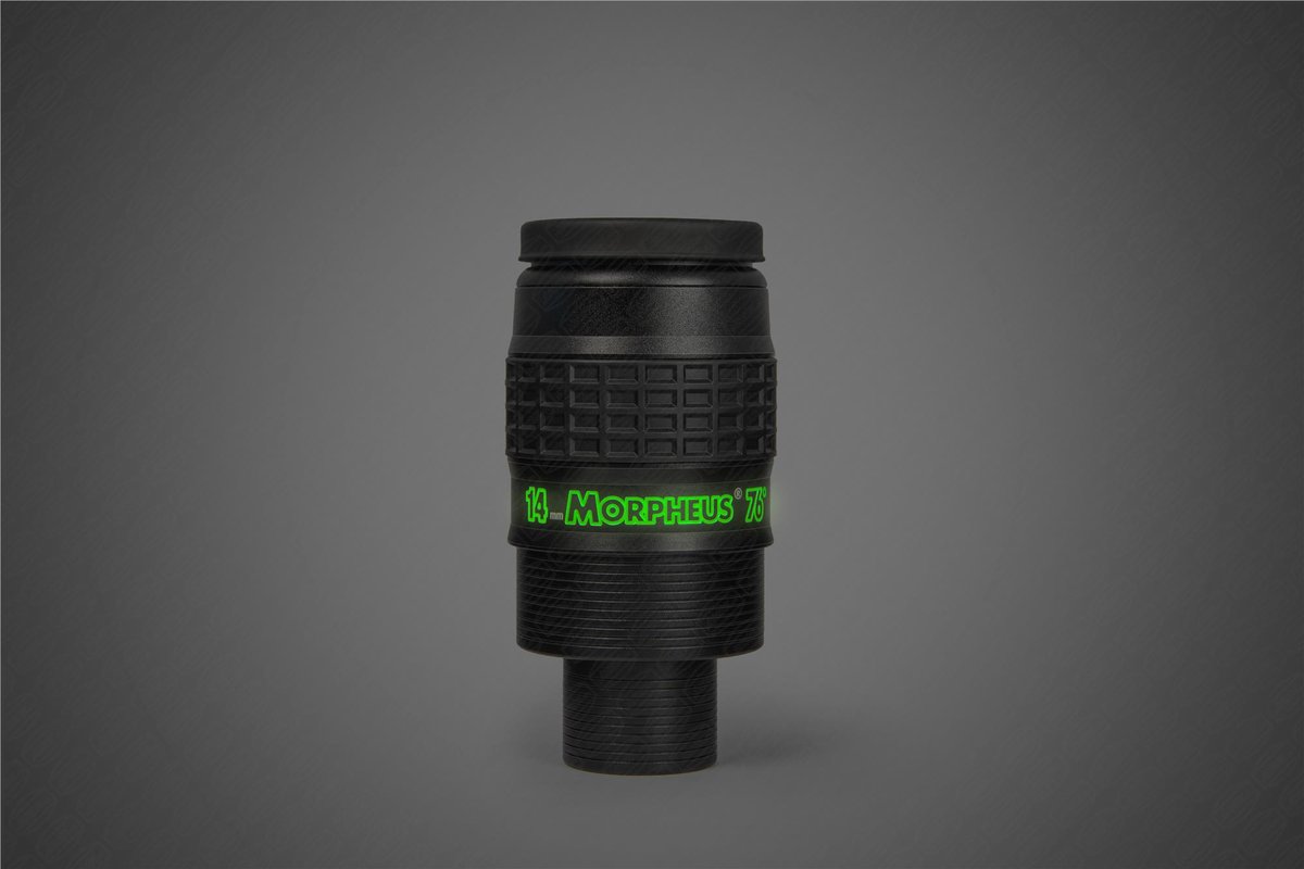 Najnowsze okulary Baader Planetarium serii Morpheus to owoc 4 lat pieczołowitych prac nad zoptymalizowaniem optyki i mechaniki w poszukiwaniu idealnego okularu astronomicznego. Nowoczesny układ optyczny, na który składa się 8 elementów w 5 grupach, wraz ze szkłem lantanowym uzyskuje ergonomiczne, 76-stopniowe pole widzenia i bardzo wygodny odstęp od oka, wynoszący ponad 18 mm. Najlepsze, wielowarstwowe powłoki Phantom Group Coatings gwarantują bardzo wysoką transmisję i kontrast obrazu pozbawionego jakichkolwiek odblasków. Bardzo duża soczewka oczna daje silny efekt "spaceru w przestrzeni kosmicznej" bez potrzeby stosowania olbrzymiego pola pozornego, po którym nie trzeba się rozglądać, by objąć je w całości. Cechą szczególną okularów serii Morpheus jest bardzo niski poziom zniekształceń geometrycznych - struktury Księzycowe oraz tarcze planet pozostają niezniekształcone nawet na krawędziach pola widzenia.
