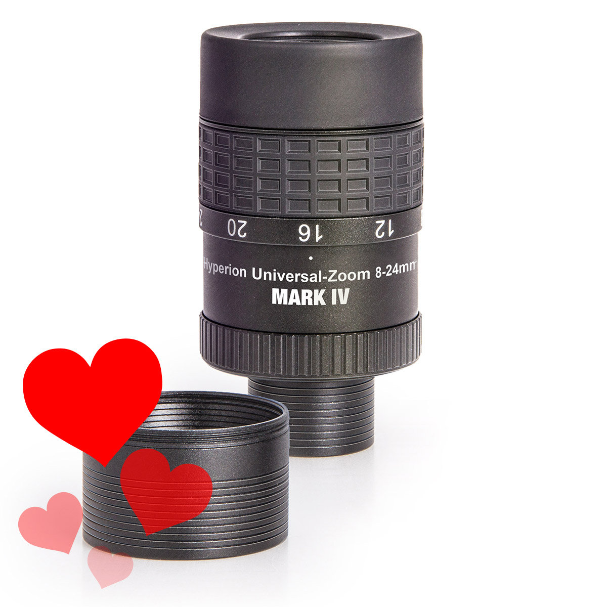 Czwarta generacja dobrze znanego i cenionego okularu zoom z serii Hyperion produkcji Baader Planetarium. Choć optyka typu zoom generalnie nie jest postrzegana jako optyka najwyższej jakości, okular Hyperion Mark IV 8-24 mm łamie powszechnie utarte standardy. Zwykłe "zoomy" są produkowane z założenia jako optyka budżetowa, kompromisowa, ale nie dotyczy to optyki okularu Baadera, który jest bez wątpienia najlepszym "zoomem" na rynku.