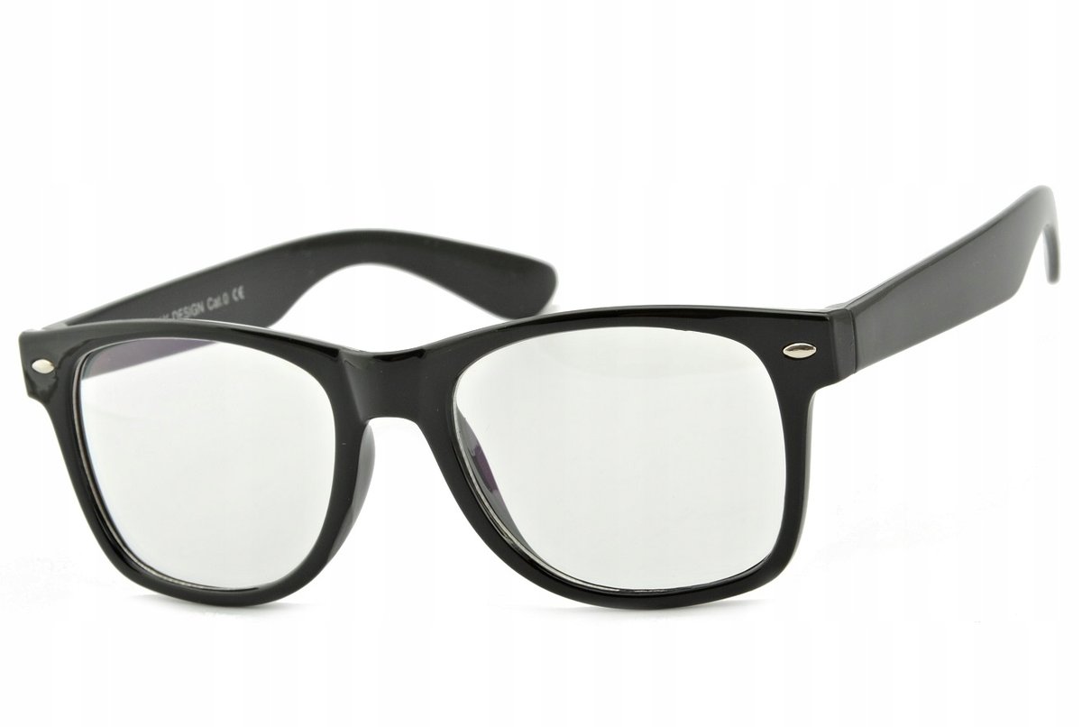 Okulary Nerd zerówki z Filtrem Światła Niebieskiego R-BL-1580K zerówki (oprawki mają możliwość wymiany soczewek na korekcyjne) oprawka czarna w połysku okulary do komputera, telefonu, tabletu ...