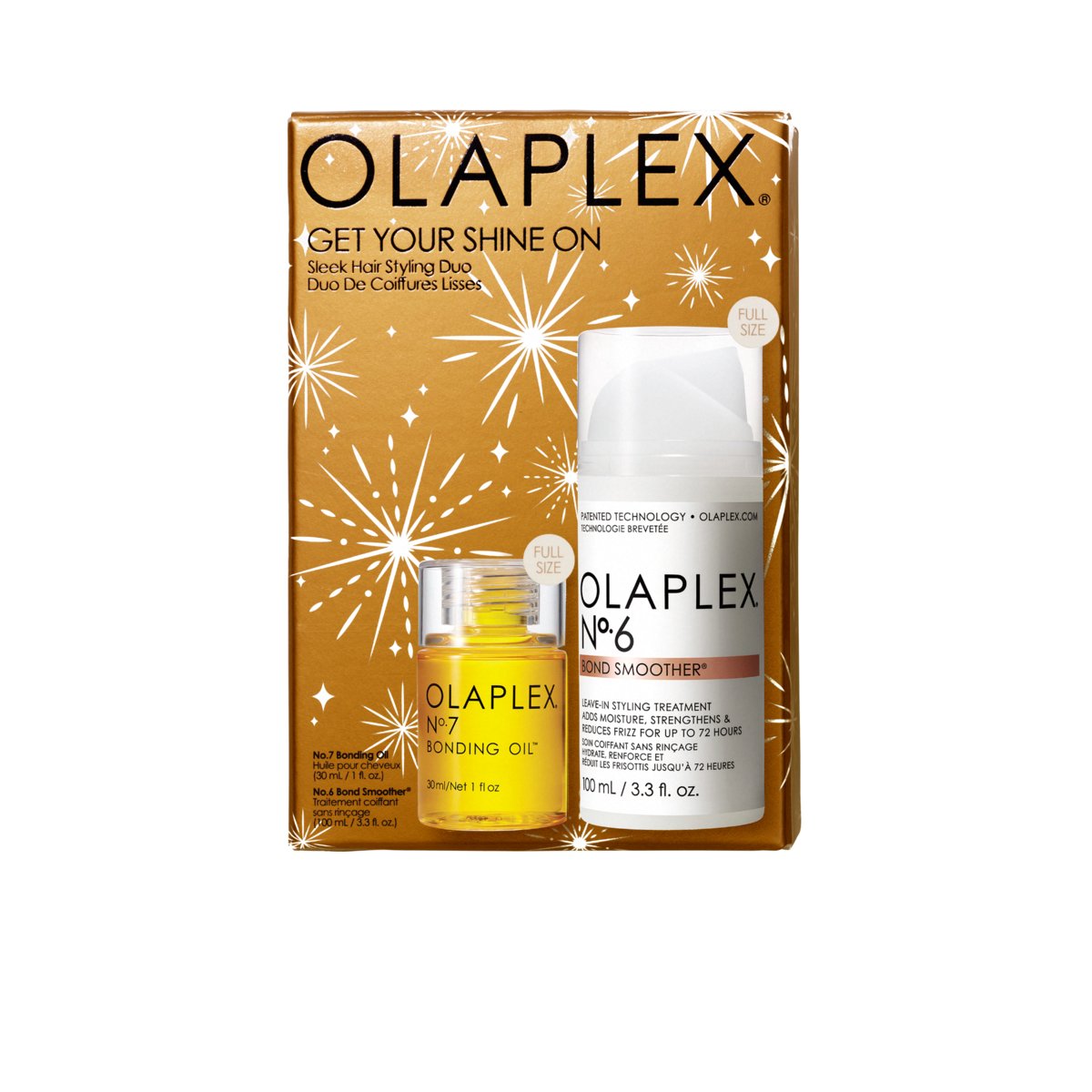 | Nazwa: | OLAPLEX Get Your Shine On, Zestaw kosmetyków, No.6 Bond Smoother® 100 ml, No.7 Bonding Oil™ 30 ml |