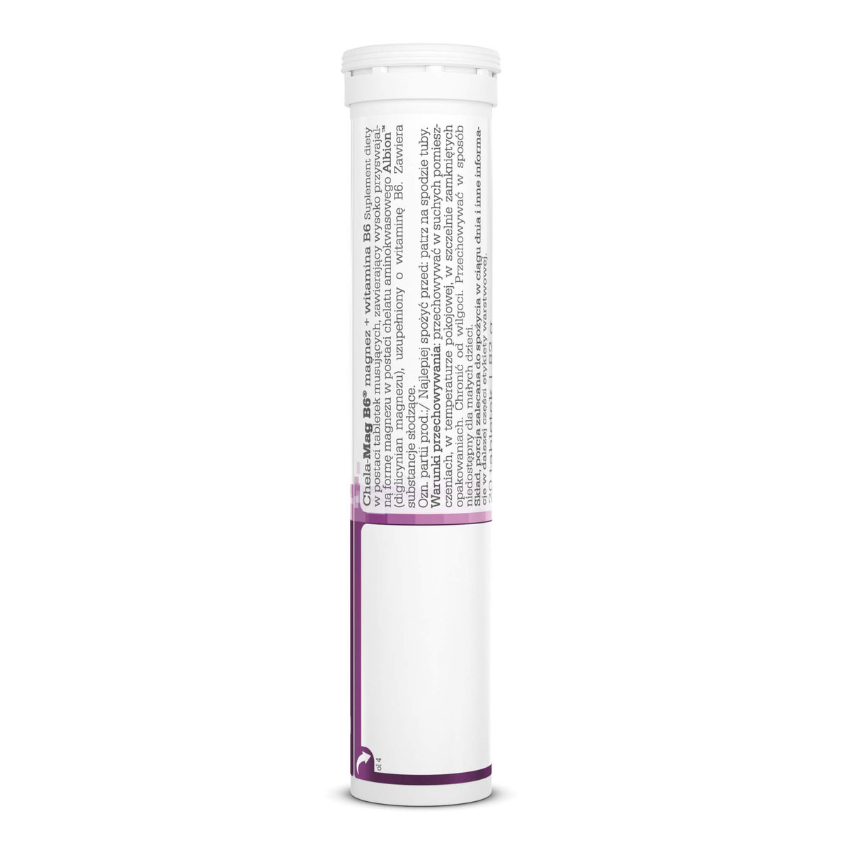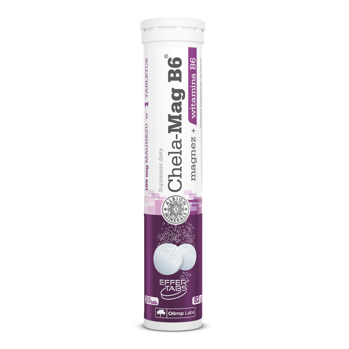 Chela-Mag B6® magnez + witamina B6 - suplement ułatwiający uzupełnienie diety w magnez wzbogacony witaminą B6. Preparat przygotowany przez firmę farmaceutyczną Olimp Laboratories występuje w postaci doskonale rozpuszczających się tabletek musujących, gwarantujących błyskawiczne uwalanianie się substancji aktywnych.