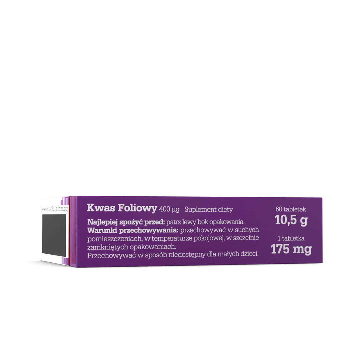Kwas foliowy 400 µg to suplement diety w formie tabletek zawierający kwas foliowy w dawce odpowiadającej zaleceniom Zespołu Ekspertów Ministerstwa Zdrowia i Opieki Społecznej w sprawie ...