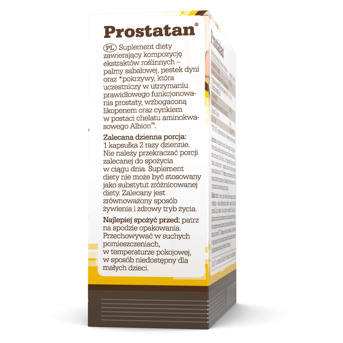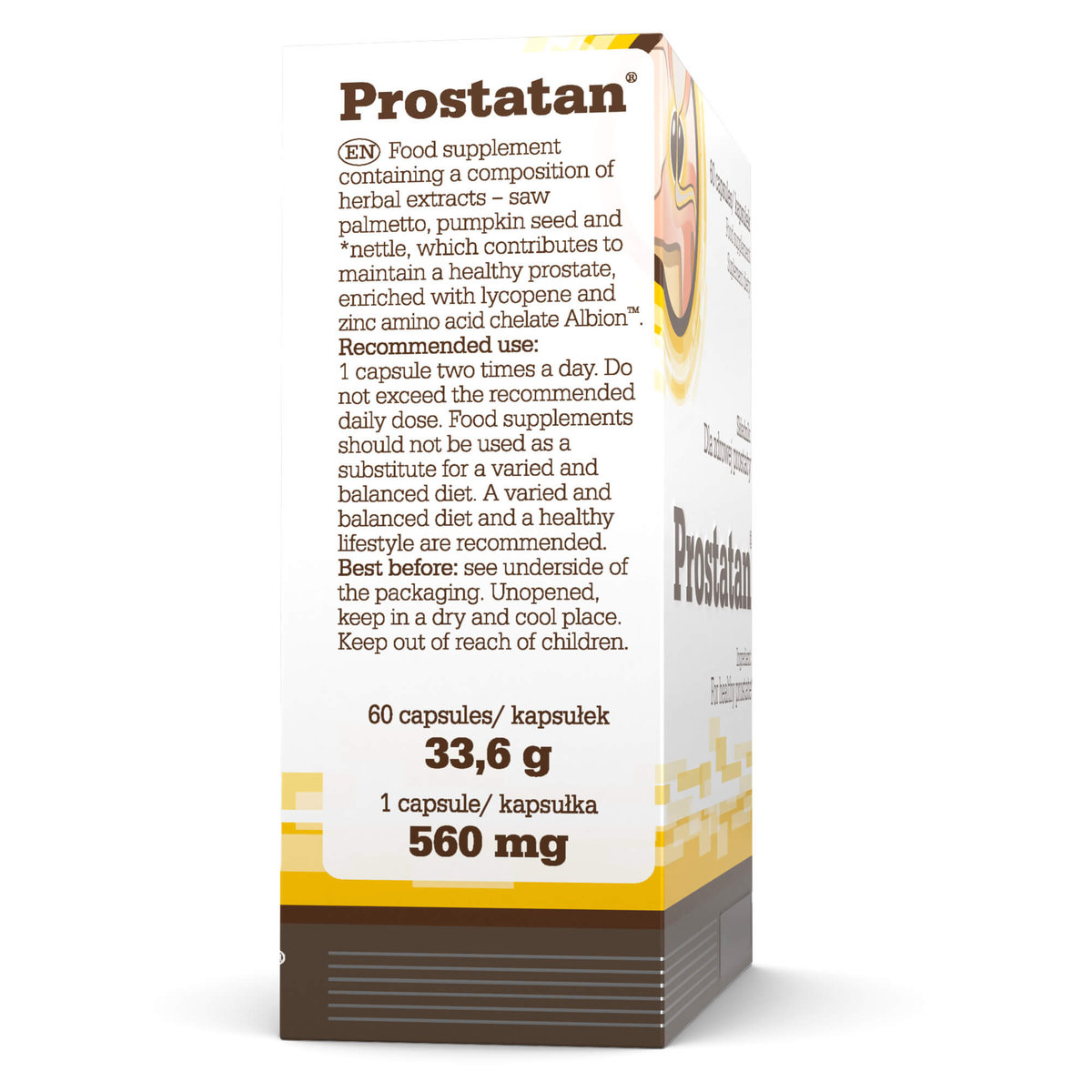 Prostatan to suplement diety zawierający kompozycję ekstraktów roślinnych (palmy sabałowej, pestek dyni, oraz pokrzywy), wzbogaconą likopenem oraz cynkiem w postaci chelatu aminokwasowego Albion®.