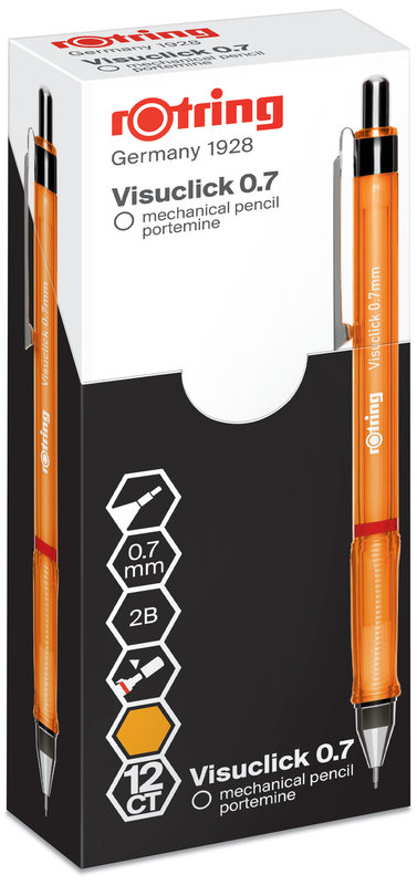 Ołówek automatyczny Rotring Visuclick | 0.7 mm | rysik 2B | żywy pomarańczowy korpus. Ołówek automatyczny rOtring Visuclick to szybki i prosty w obsłudze mechanizm, który wyzwala kreatywność w ...
