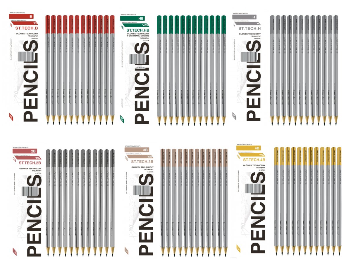 Ołówki techniczne z serii ST.TECH to profesjonalnie wykonane narzędzie piśmiennicze, które sprawdzi się w użytku biurowym, domowym oraz szkolnym. Wysoka jakość wykonania ołówków oraz zastosowana technologia SBS, zabezpieczająca grafit przed łamaniem, usatysfakcjonuje zarówno początkującym jak i doświadczonym rysowników.