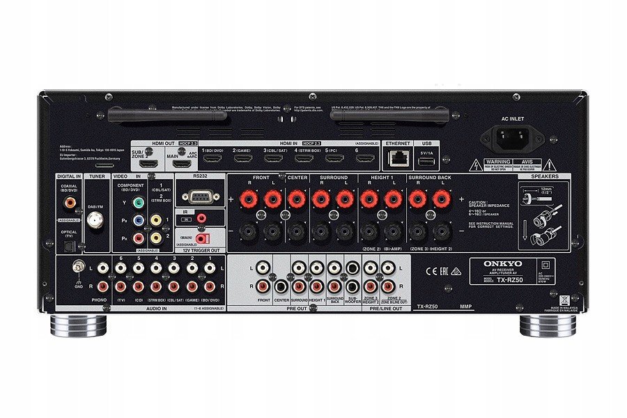 Onkyo TX-RZ50 obsługuje również konfiguracje głośników 7.2.2 z Dolby Atmos oraz DTS:X. Dodatkowo Dolby Atmos Height Virtualizer zapewnia wirtualny dźwięk 3D przy dowolnym układzie głośników. Dwuzakresowe Wi-Fi, dwukierunkowa technologia bezprzewodowa Bluetooth oraz złącze Ethernet gwarantują szeroki dostęp do usług online i bezprzewodowego strumieniowania dźwięku.