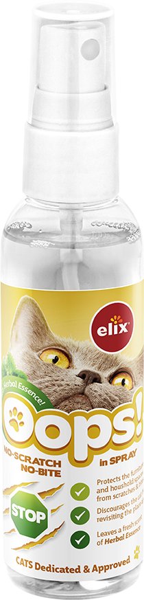 ELIX Oops No-Scratch & No-Bite Cat Spray Lemongrass Essence75 mlOpis produktuSpecjalnie przetestowana mieszanka naturalnych ekstraktów ziołowych ma na celu zniechęcenie zwierząt do niszczenia ...